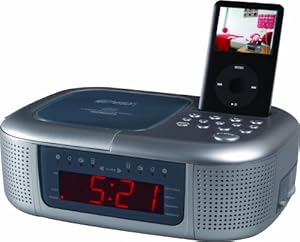 - Clock radio with iPod docking station and CD player